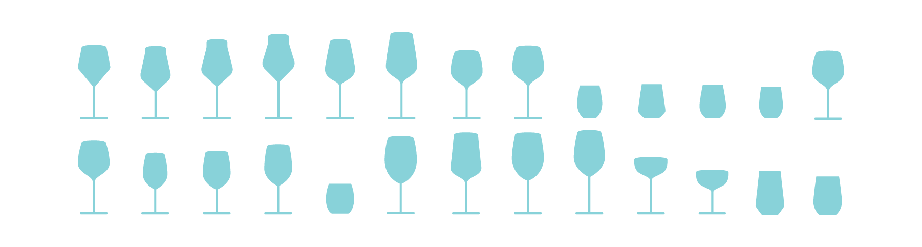 Our Stemmed Wine Chillers are designed to pair with most standard stemmed glassware. See sample shapes below. Wine glasses with a larger than standard bowl, flat bottom, or extra long stem may not be suitable for VoChill. Wine glasses with larger than standard bowls that are wider than 3.75”, or with extra long stems longer than 4.5” may not be suitable with VoChill.